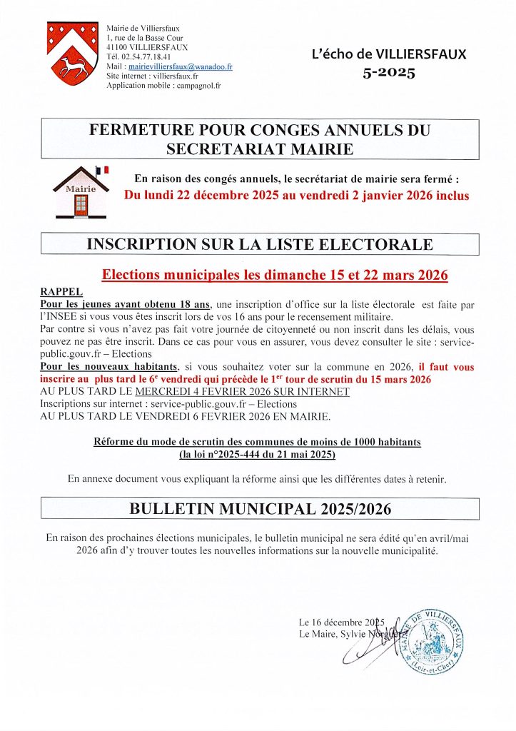 BUS FRANCE SERVICE A VILLIERSFAUX DE JANVIER A JUIN 2026