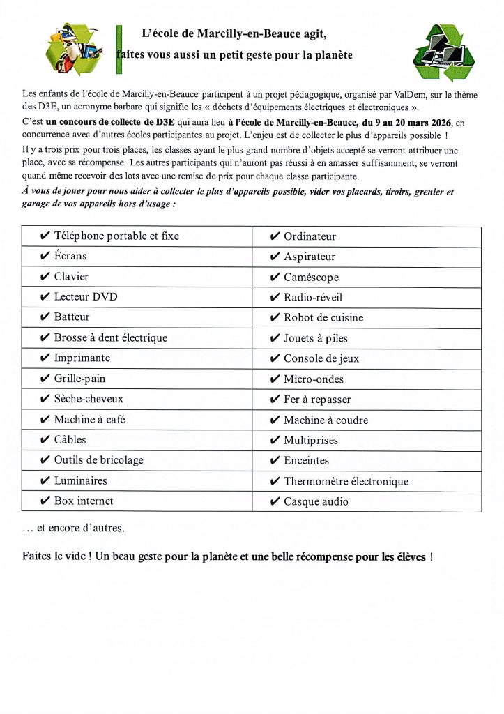 ECOLE DE MARCILLY-EN-BEAUCE AGIT, FAITES VOUS AUSSI UN GESTE POUR LA PLANETE