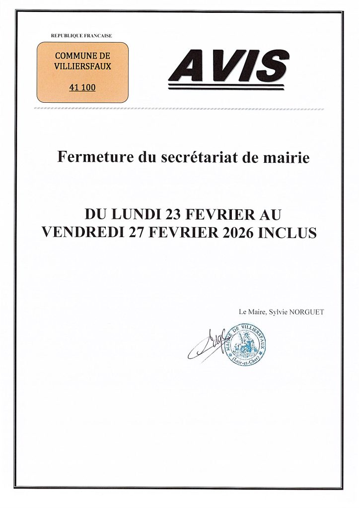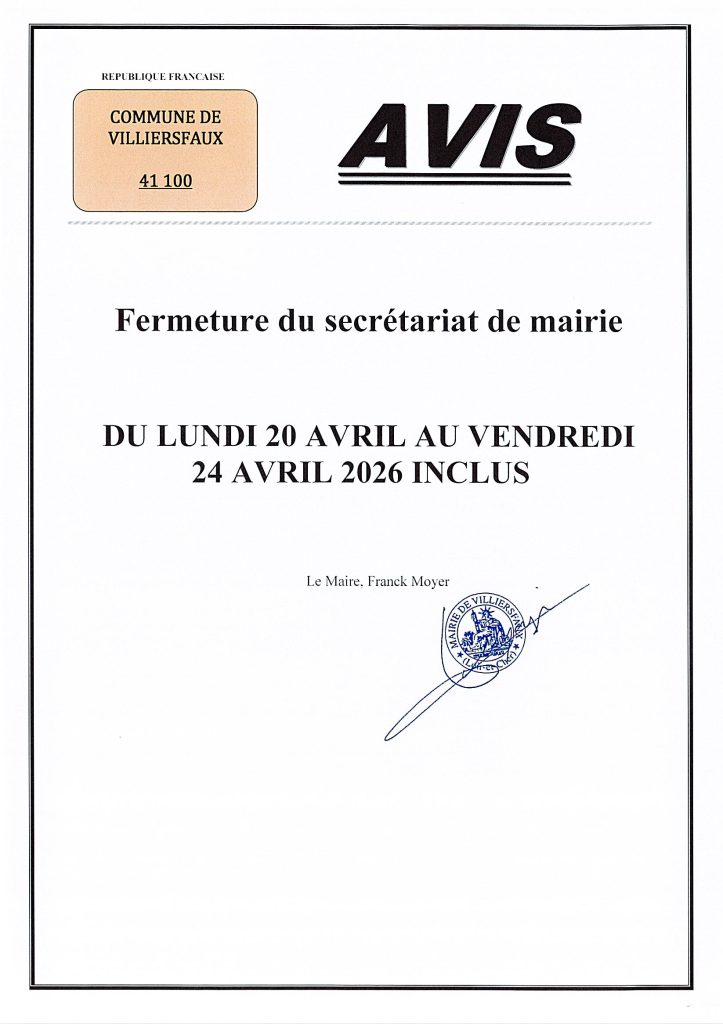 FERMETURE SECRETARIAT DE MAIRIE