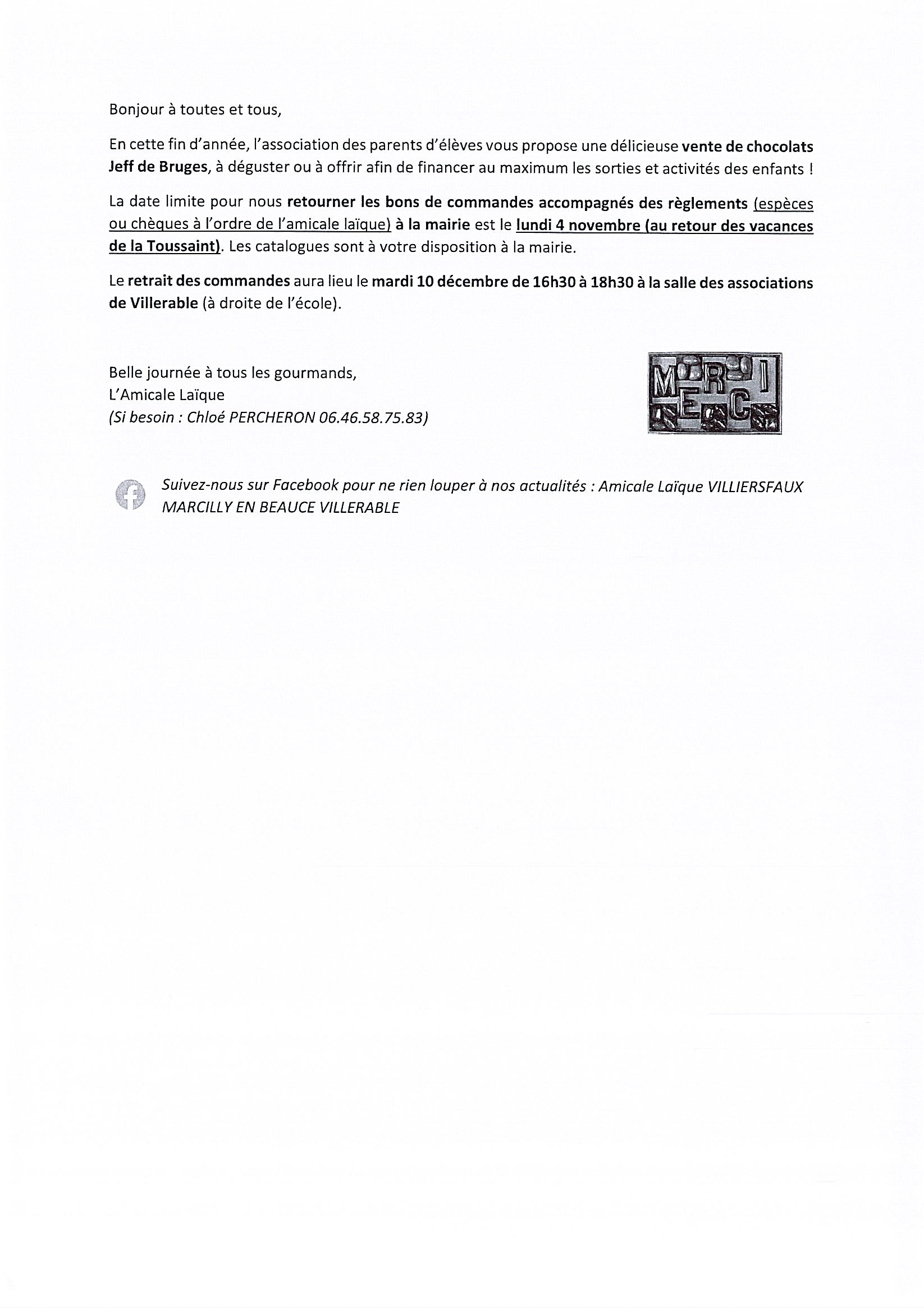 VENTE DE CHOCOLATS POUR LES FETES DE NOEL