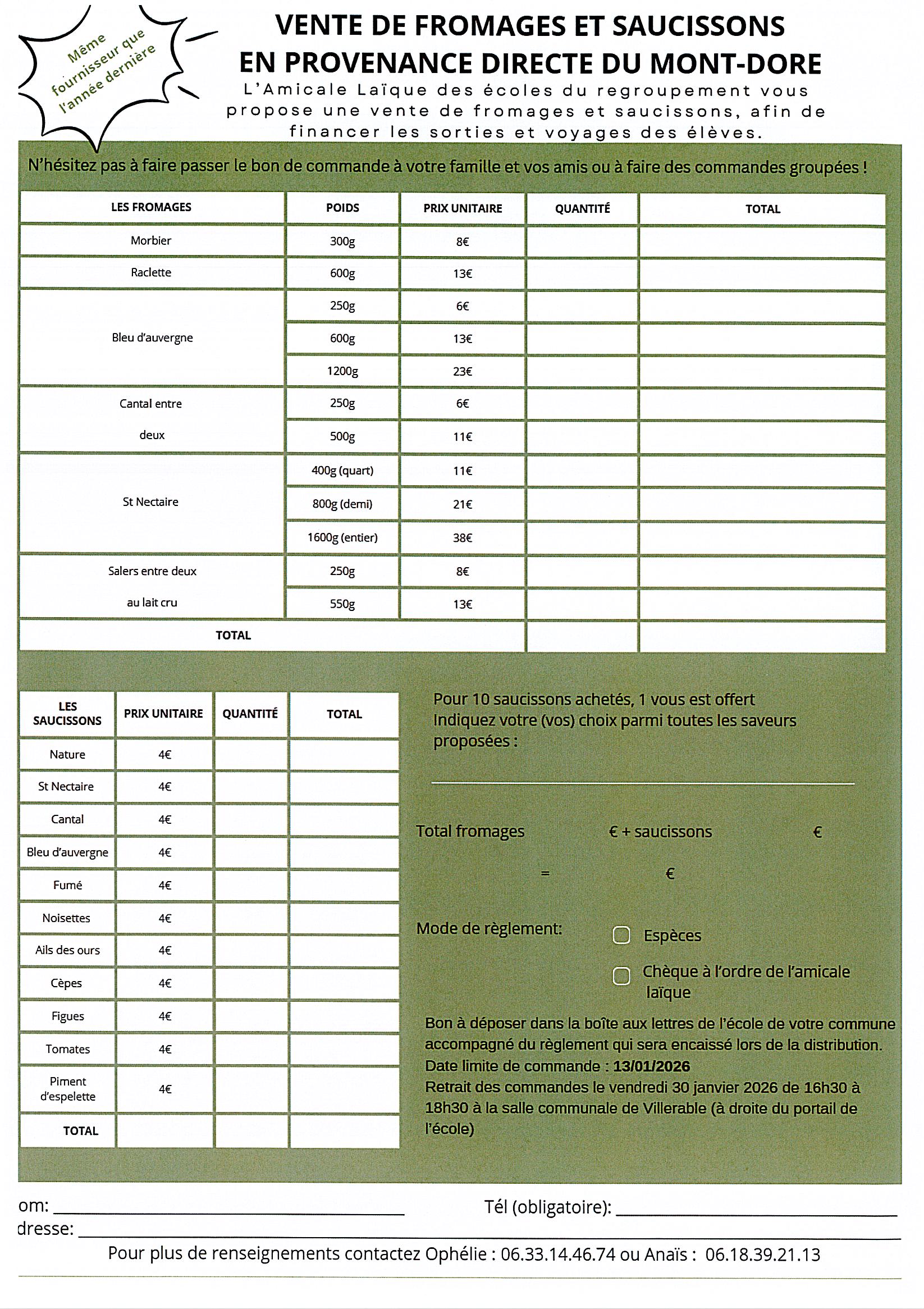 VENTE DE FROMAGES ET SAUCISSONS AMICALE LAIQUE